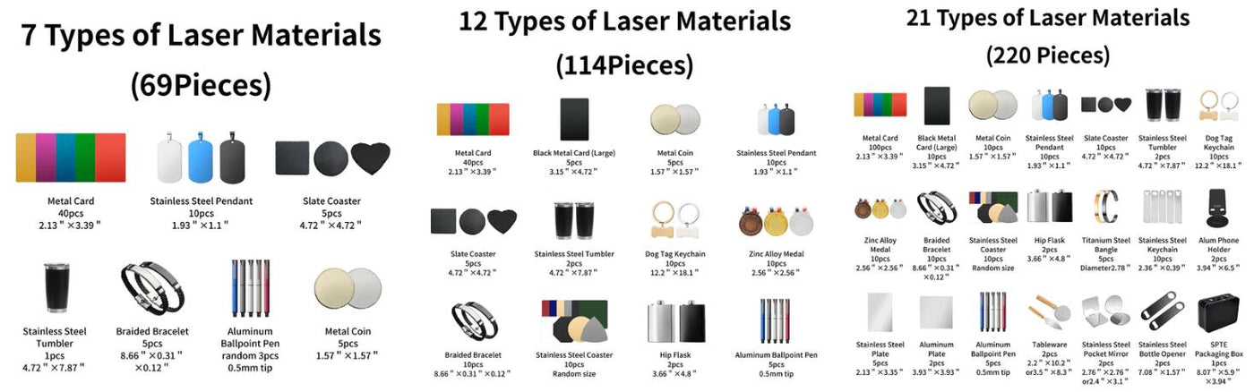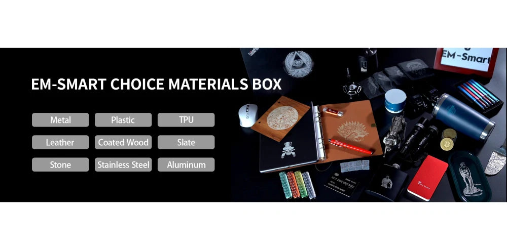 Das Lasermaterial-Set von EM-Smart enthält eine Auswahl an Materialien zum Gravieren. Ideal zum Experimentieren mit verschiedenen Substraten für Lasergravurprojekte.