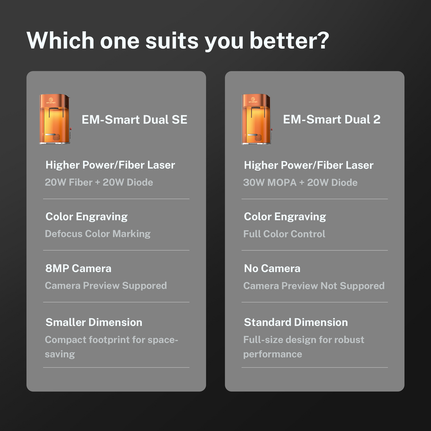 Grabador láser de escritorio EM-Smart Dual SE de 20 W de fibra y 20 W de diodo