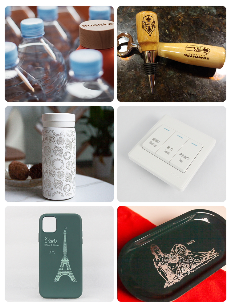 - Engraving: Deeply and precisely marks stainless steel, aluminum, titanium, brass, anodized aluminum, coated metals, ceramics.