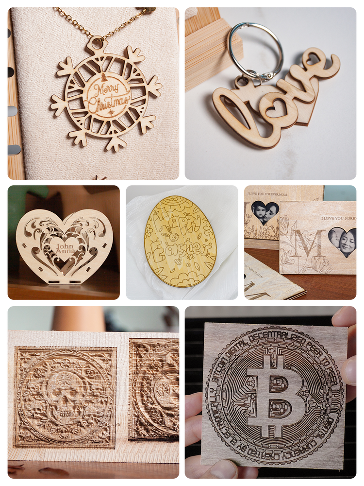 - Cutting: Powerfully cuts materials like 25mm wood and 15mm acrylic, and engraves on surfaces including 1mm metal (using a coating).