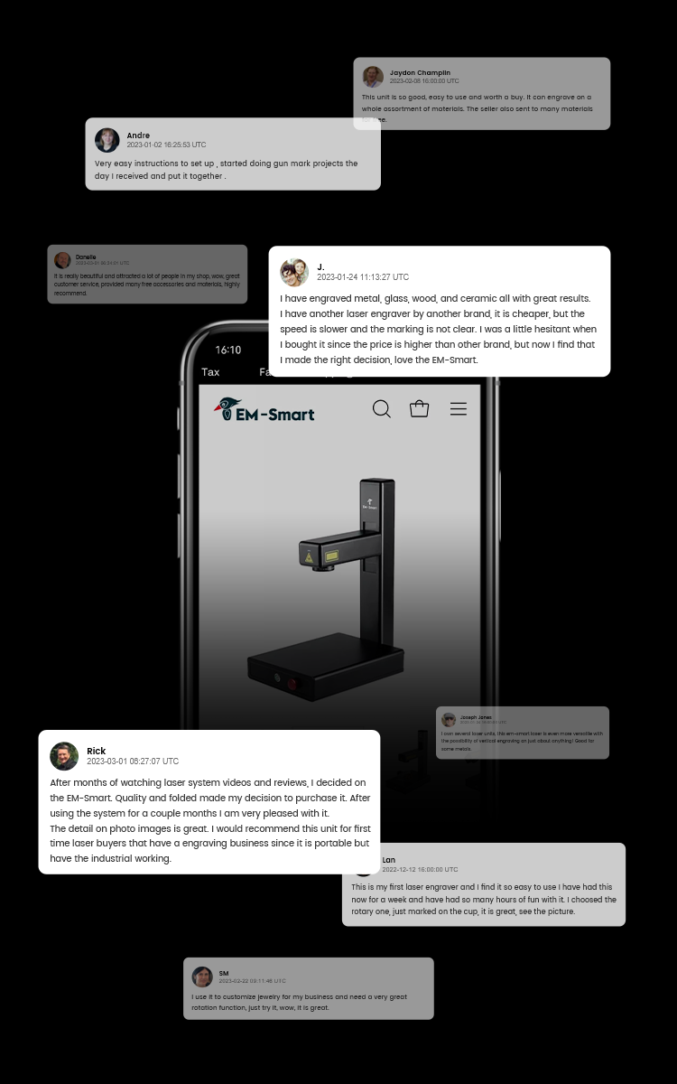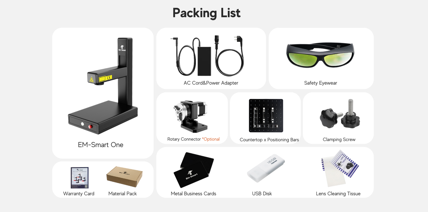 All EM-Smart lasers come with customized BJJCZ laser marking board, they are compatible with both Ezcad & LightBurn to spark every ideas, and you can use your EM-Smart on Windows, MAC, Linux.