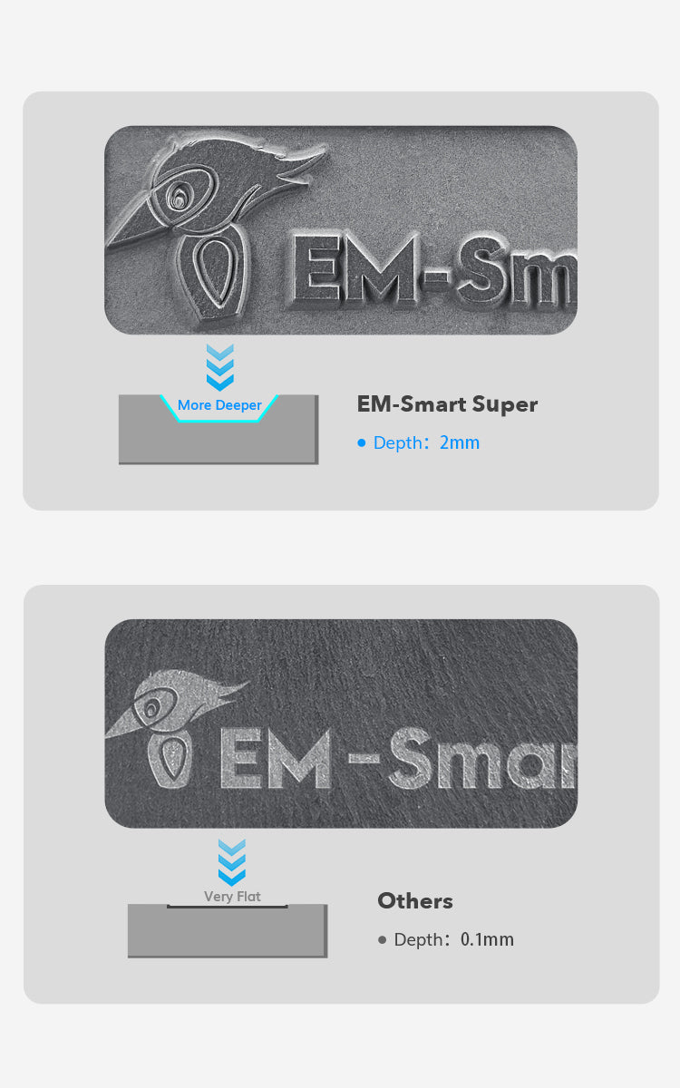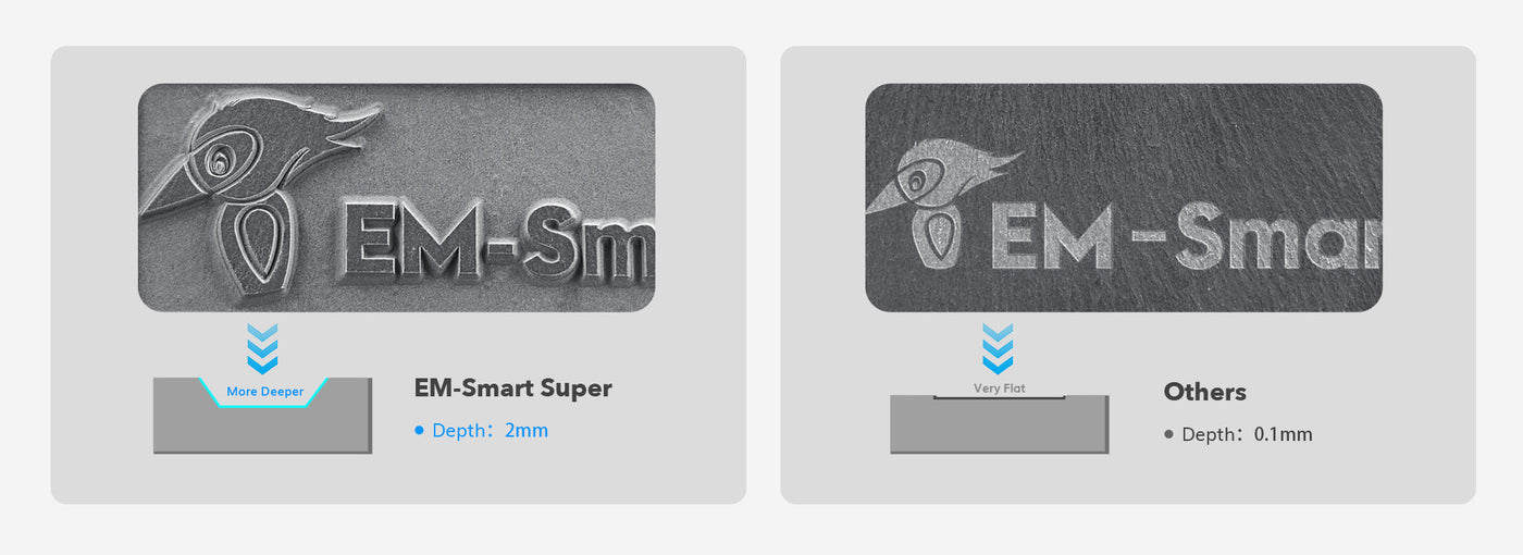 EM-Smart laser engraver provides high accuracy engraving with its industrial-grade laser source, professionally customized galvo and F-Theta lens, allows for a leap in engraving accuracy.